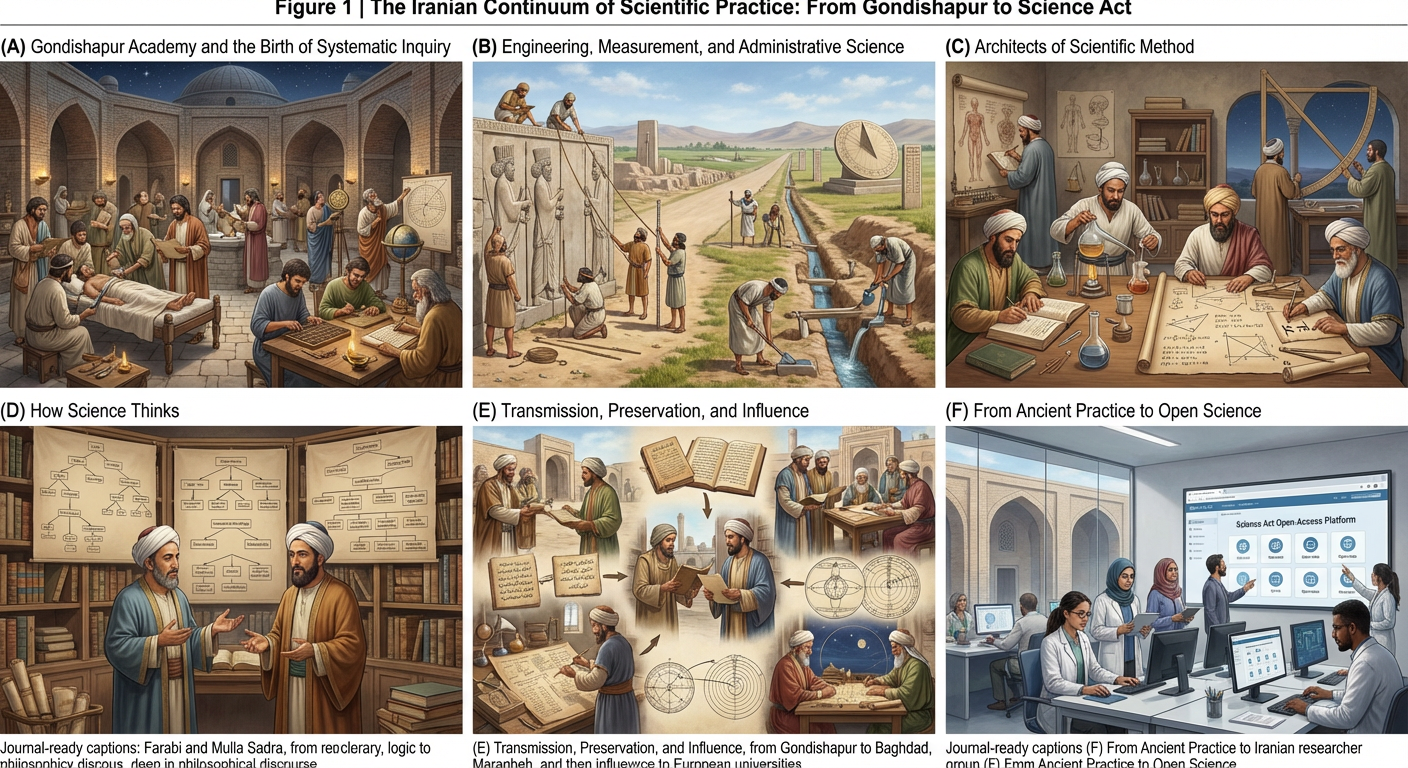 (F) Science Act (founded 2024) as a contemporary, open-access, multidisciplinary journal representing the modern continuation of Iran’s long-standing scientific tradition—bridging ancient scholarly practice with global, transparent, and reproducible research in the digital era.
